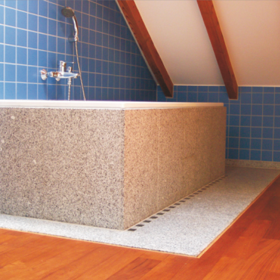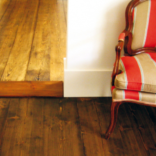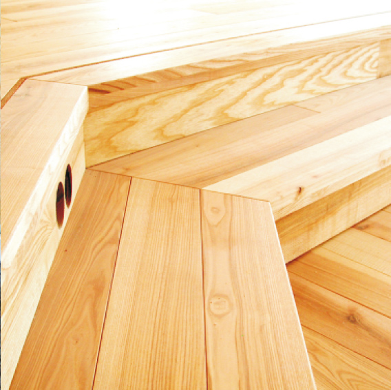 stufenausbildung an podest mit unterkonstruktion material: esche-dielenboden oberfläche: öl+wachs